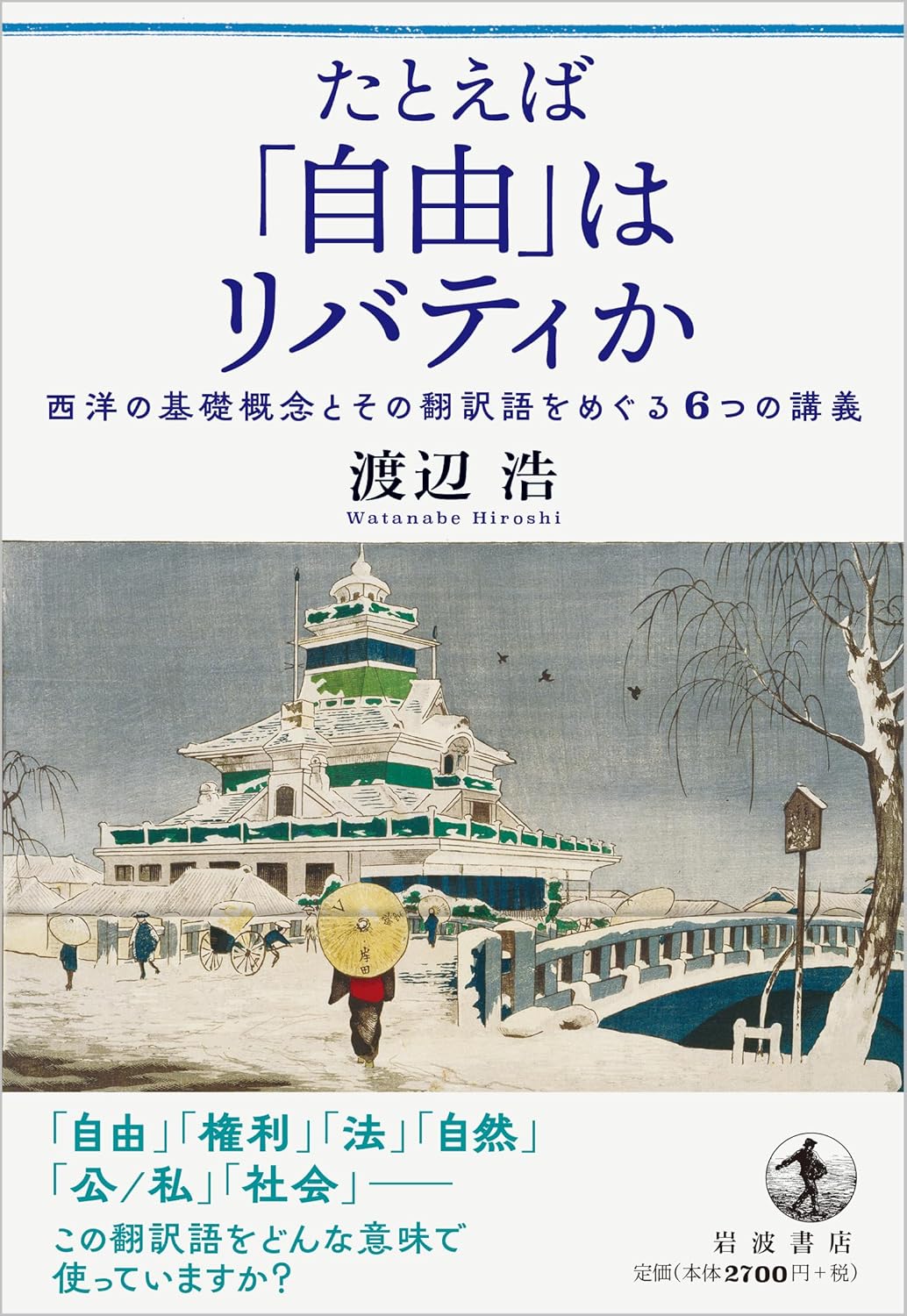 phrh205455 投稿作成者2025年12月18日 5:00 PM たとえば「自由」はリバティか 西洋の基礎概念とその翻訳語をめぐる6つの講義 by 渡辺浩 幕末から明治の初め、西洋文明を形づくる基礎的な概念が日本に入り、さまざまな試みの末に「自由」「権利」「法」「自然」「公/私」「社会」といった翻訳語が普及した。これらは、果たして原語と同じ意味だろうか。日本政治思想史の研究者が、西欧における原義を探り、翻訳語の意味との相違を明らかにする連続講義。 目 次 開講にあたって 表記について 第1講 「お金に不自由しています」FREEDOM・LIBERTY 1.「自由便当」とFreedom (1)コンビニ (2)奴隷でないこと 2.翻訳の試み (1)困難 (2)試みの例 3.「自由」 (1)普及 (2)「自由民権」 (3)疑い 第2講 「武士の一分でござる」RIGHT 1.「利権」と「正しいこと」 (1)「権利」とは (2)Rightとは (3)「権」である「利」 2.翻訳の試み 3.「株」と「分」 第3講 「正義省」はどこに LAW 1.Law/right/justice 2.Law/Gesetz/loi 3.「法」と「理」 (1)清朝中国において (2)徳川日本において (3)維新前後 第4講 「この村は、本性がいっぱいです」NATURE 1.Nature/nature/Natur (1)本性 (2)被造物 2.「自然」 (1)Spontaneous (2)ズレ 3.「天」と「性」 (1)「天」と「天然」 (2)「性」 第5講 「それは公用ですか」PUBLIC/PRIVATE 1.「公用」 (1)混乱 (2)共通 2.Public/private 3.公/私 (1)共にする/しない (2)重なる波紋 4.おほやけ/わたくし (1)「公方」「公儀」「公界」 (2)入れ子 5.「公私混同」 第6講 「キミも、いよいよ社会人だね」SOCIETY 1.「社会国家」と「社会人」 (1)social/sozial (2)交際 (3)世間 (4)「社会」 2.「仲間」「組」「連中」「社中」 3.「社」「会」「会社」 注 講義を終えて 人名索引/史料索引 返信 ↓